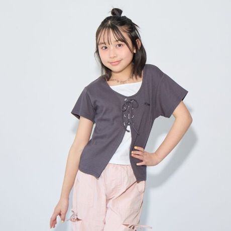 テレコレースアップ半袖トップス