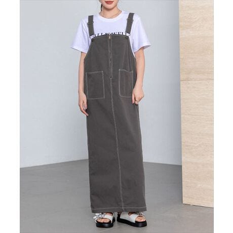 大人カジュアルな印象のカーゴ風デザインのジャンパースカート。