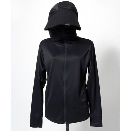 フェイスガード付き ツバ付きフード UVカットパーカー ソフトメッシュ ジップパーカー 吸汗速乾 指穴付き レディース