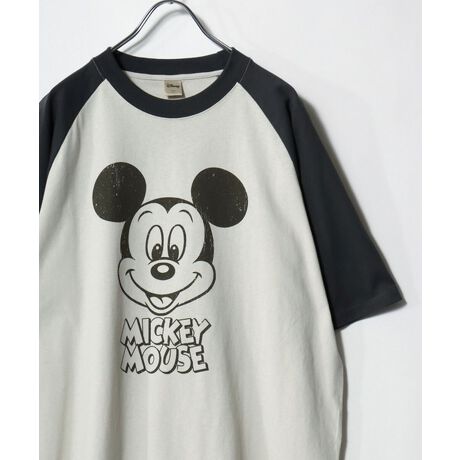 Disney/ディズニー ト フロント/バック ビンテージライクプリント ラグラン 半袖Tシャツ レディース メンズ
