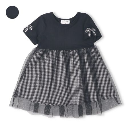 ネットショップと専門店、セレクトショップ限定のアイテム!【限定アイテムのため、店舗取り寄せは不可になります。】上品なイメージのチュールのスカートのドッキングデザインの半袖ワンピース。袖のリボンもアップリケもポイント!後ろの衿ぐりはゴム仕様になっているので着脱もスムーズにできます。夏のお出かけにオススメな1枚。【アイテム】トップス シンプル ガーリー フェミニン カジュアル お洒落 オシャレ かわいい 可愛い 普段着 デイリーウェア お出かけ着 お外着 お外遊び着 子ども こども 女児 女の子 ガールズ キッズ ベビーサイズ トドラーサイズ 幼稚園 保育園 小学校 通園 通学 小学生 2026年春夏物新作 丸高衣料 ブラック ギンガムチェック 黒色 ウィルメリー りぼん