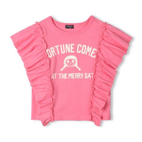 ダディオダディの人気の女の子のキャラクターのダディコちゃんのプリント入り。フリルデザインが目を惹く半袖Tシャツ。【アイテム】トップス シンプル ガーリー フェミニン カジュアル お洒落 オシャレ かわいい 可愛い 普段着 デイリーウェア お出かけ着 お外着 お外遊び着 子ども こども 女児 女の子 ガールズ キッズ ベビーサイズ トドラーサイズ 幼稚園 保育園 小学校 通園 通学 小学生 2026年春夏物新作 丸高衣料 ホワイト 白色 ビビットピンク ダディオダディ コットン100% 綿100%