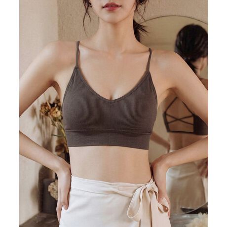 洋服とのスタイリングに1枚持っておくと重宝するバッククロスデザインのミディ丈ブラトップ。