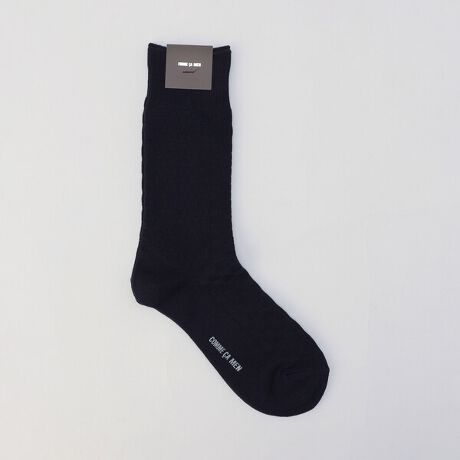[型番:07-54QO03-206]《デザイン》コムサメン定番デザインの市松ジャカードソックスです。凹凸感の出るリンクスジャガード編み機により、ふっくらと編み上げています。ギフトにもおすすめです。《素材》発色の良い綿アクリル糸をベースに使用し裏糸やリブ裏に程よいテンションのポリエステル、ポリウレタン糸を使用しています。