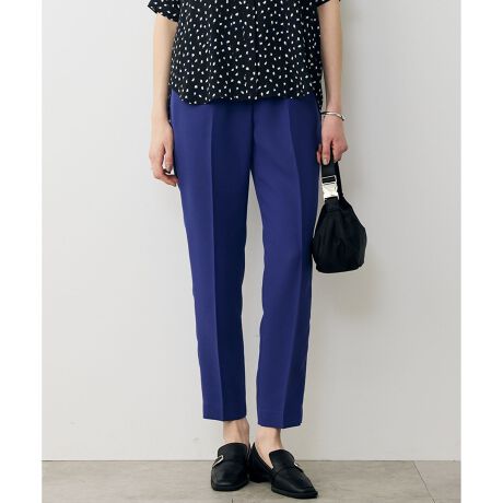 ■デザインウエスト内側にドロスト仕様を採用したセンタープレス入りのスティックパンツです。ウエストベルト部分は光沢感のある裏面使いでさり気ない洒落見えを叶えます。ウエストゴムでストレスフリーな穿き心地でなので、デスクワークも長時間の移動もラクラク。同シリーズのブラウスやロングジレと合わせてセットアップで、セレモニーシーンにも活躍します。