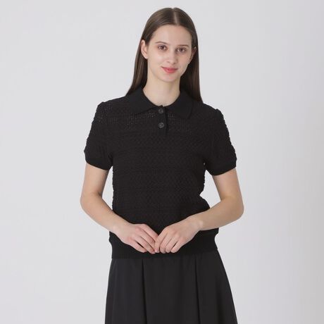 [型番:55N06726__]◆レース×ニットの襟付きトップス【Design】表情のあるレースとニット素材のコンビネーションデザインがレトロ可愛いニットトップスです。衿や、袖口、裾のリブがアクセントになっています。ややコンパクトなシルエットがどんなボトムとも相性よく着用いただけます。