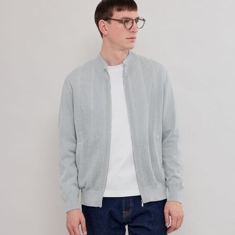 アウターとしてもミドルレイヤーとしても活躍するドライビングニット。その名の通り、クルマの運転時に快適に着られるニットとしてヨーロッパで愛されてきた定番のスタイルです。今シーズンは、フロントにシアー調の編み柄をあしらい、上品な意匠性をプラス。袖と背面は重ね着しやすいプレーンな地柄で構成し、軽やかさと実用性を両立しました。どんなスタイルにも自然に馴染み、軽量なニットアウターとしてシーズンを通してお楽しみいただける一着です。