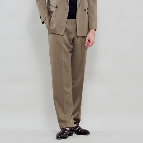 腰裏にマーベルトを採用したクラシカルな印象の1プリーツトラウザースです。適度なゆとりのヒザ周りから裾に向けて緩やかに絞られるスッキリとしたラインのトラウザースです。