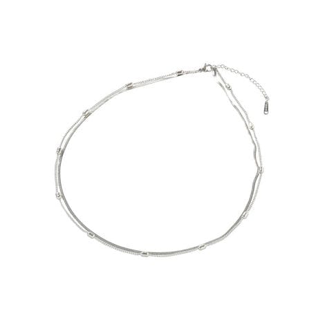 艶めく2連で魅せる洗練スネーク。しなやかに首元へ沿うスネークチェーンを2連で仕上げたネックレスです。異なるチェーンの重なりが奥行きを生み、これひとつでコーディネートが整います。ステンレス素材を使用しているため、変色しにくくデイリー使いしやすいのも魅力です。上品な光沢がデコルテを美しく見せ、カットソーやシャツ、ワンピースなど幅広い装いに自然となじみます。ワンポイントとして取り入れるだけで、シンプルなスタイルもぐっと洗練された印象に仕上がります。季節を問わず活躍する万能ネックレスです。※モデル着用画像は、光の当たり具合で色味が違って見える場合がございます。※お使いのモニター環境によって商品の色味が違って見える場合がございます。