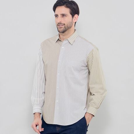 ヴィンテージのフランス製シャツをベースに、現代的なオーバーサイズシルエットで再解釈したパッチワークシャツ。クラシックなワークシャツのディティールをモチーフに、繊細なステッチワークと素材のコントラストで上品に仕上げました。ややゆとりをもたせたシルエットは、程よく肩の力が抜けたリラックス感を演出しながらも、マッキントッシュロンドンらしい上品な印象をキープしています。