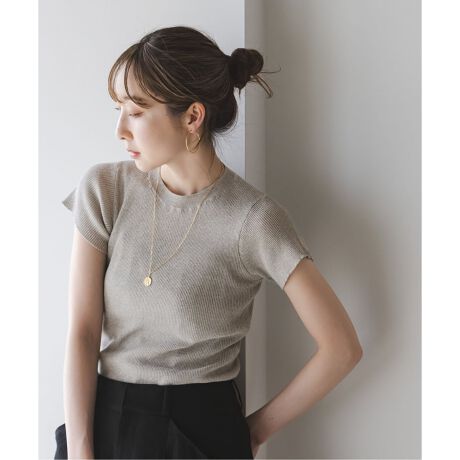 カットソーのように何にでも合わせやすくも、ニットのキレイめな雰囲気で着用できる夏のベーシックトップス。