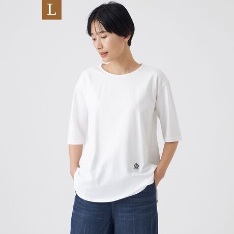 40/2の程よい肉感を持つ綿100%天竺素材。柔らかく快適な着心地で、デイリーに使いやすい万能な風合いが特徴です。