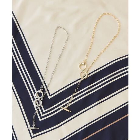 程よく存在感のあるマンテルグラスディテールがポイントのネックレス。シンプルなデザインで合わせやすく、スタイリングをお洒落に演出します。マンテル金具をメイントップにしたり、後ろに回したりアレンジも自在。カジュアルからきれいめまで幅広く活躍するおすすめのアイテムです。※モデル着用画像は、光の当たり具合で色味が違って見える場合がございます。※お使いのモニター環境によって商品の色味が違って見える場合がございます。
