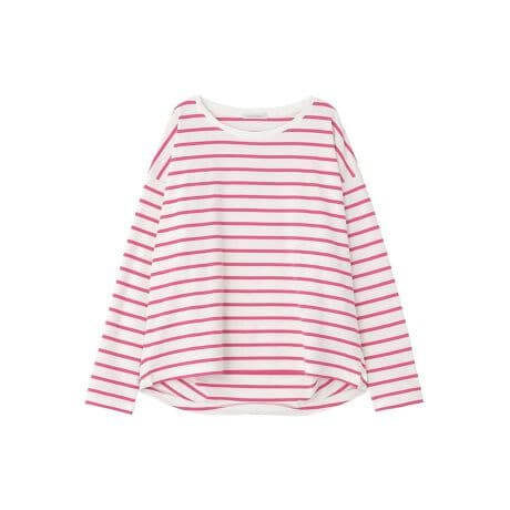 立体シルエットで魅せる大人のゆったりカジュアルサイドタックが生み出す立体的なシルエットが特徴のプルオーバーです。ほどよくゆとりのあるデザインが身体のラインを自然にカバーし、リラックス感のある大人カジュアルな着こなしを叶えてくれます。シンプルなデザインながらもタックによって動きのあるフォルムが生まれ、着るだけでこなれた印象のスタイリングが完成します。前後差のある裾ラインが軽やかな抜け感を演出し、パンツスタイルはもちろんスカートとのコーディネートにも美しくなじみます。無地は上品で落ち着いた印象に、ボーダー柄はコーディネートのアクセントとして取り入れやすいのも魅力です。日常使いしやすいデザインで、さまざまなシーンで活躍する着回し力の高いアイテムです。透け感[ややあり]