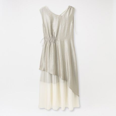 スカート部分には、軽やかに揺れる楊柳サテン素材をレイヤード。シャンブレー効果による奥行きのある色合いと、ほのかな光沢が高級感を演出します。