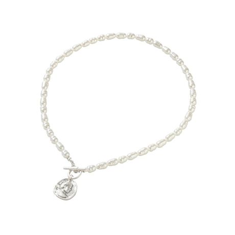 パールとコインで魅せる洗練デザイン。表情豊かなパールとクラシカルなコインモチーフを組み合わせたネックレスです。程よいボリューム感がありながらも軽やかな着け心地で、長時間の着用でも快適にお使いいただけます。マンテル仕様がデザインのポイントとなり、後ろ姿までさりげなくおしゃれを演出します。カットソーやワンピースに合わせるだけで、上品カジュアルな印象に仕上がります。季節を問わず活躍し、セレモニーから普段使いまで幅広いシーンで頼れるアクセサリーです。首元に華やぎを添えたい方におすすめです。※モデル着用画像は、光の当たり具合で色味が違って見える場合がございます。※お使いのモニター環境によって商品の色味が違って見える場合がございます。