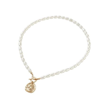 パールとコインで魅せる洗練デザイン。表情豊かなパールとクラシカルなコインモチーフを組み合わせたネックレスです。程よいボリューム感がありながらも軽やかな着け心地で、長時間の着用でも快適にお使いいただけます。マンテル仕様がデザインのポイントとなり、後ろ姿までさりげなくおしゃれを演出します。カットソーやワンピースに合わせるだけで、上品カジュアルな印象に仕上がります。季節を問わず活躍し、セレモニーから普段使いまで幅広いシーンで頼れるアクセサリーです。首元に華やぎを添えたい方におすすめです。※モデル着用画像は、光の当たり具合で色味が違って見える場合がございます。※お使いのモニター環境によって商品の色味が違って見える場合がございます。