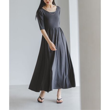 ニット地でラフな着心地ながら女性らしく纏えるサマーニットワンピース。