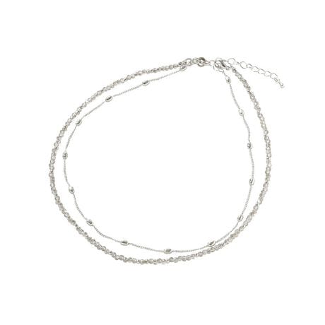 きらめきを重ねる上品2連デザイン。繊細にカットされたガラスビーズと華奢なチェーンを重ねた2連ネックレスです。光を受けるたびにさりげなく輝き、顔まわりを明るく見せてくれます。細身のラインなので主張しすぎず、ワンポイントとして毎日のコーディネートに取り入れやすいのが魅力です。きれいめスタイルにはもちろん、カジュアルなトップスに合わせるだけでもぐっと洗練された印象に仕上がります。軽やかな着け心地で長時間でも快適にお使いいただけます。デイリーからお出かけまで幅広いシーンで活躍する、万能な2連ネックレスです。※モデル着用画像は、光の当たり具合で色味が違って見える場合がございます。※お使いのモニター環境によって商品の色味が違って見える場合がございます。