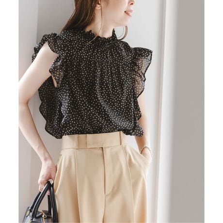 春から暑い夏にかけて嬉しい、一枚で華やかな印象を醸し出すノースリーブラウス。