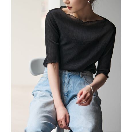 一枚着としてもレイヤードとしても、様々な着こなしを楽しめる表情豊かなシアートップスです。