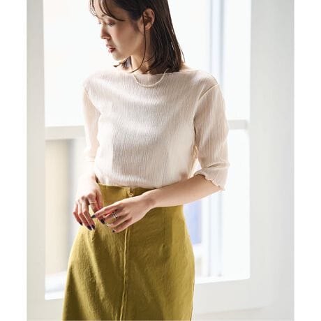 一枚着としてもレイヤードとしても、様々な着こなしを楽しめる表情豊かなシアートップスです。