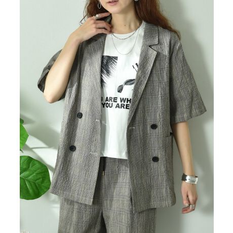 スラブチェックダブル半袖ジャケット