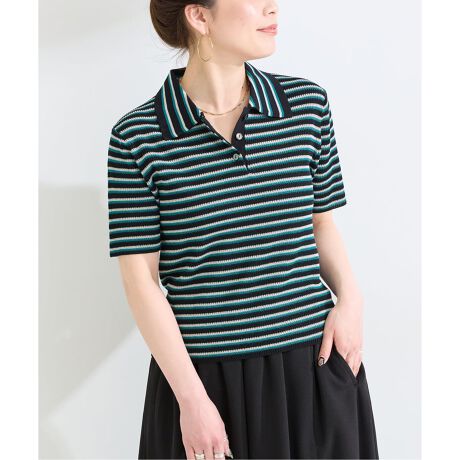 マルチボーダーが目を惹く半袖ポロニット。