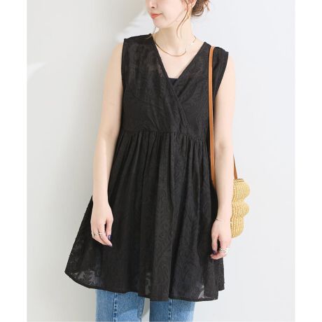 《予約》手洗い可 / カットジャガードノースリーブブラウス