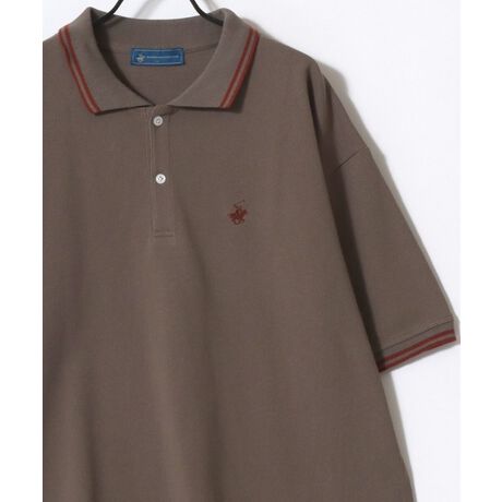 BEVERLY HILLS POLO CLUB/ビバリーヒルズポロクラブ オーバーサイズ カノコ 無地 ロゴ ワンポイント刺繍 襟ライン 半袖ポロシャツ/レディース メンズ