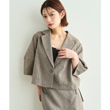 マルイウェブチャネル   /   ミル   /   アウター・ジャケット・コート   /   テーラードジャケット   /   【UVカット・イージーケア】 リネンライク ランタンスリーブ クロップドジャケット 【mil/ミル】