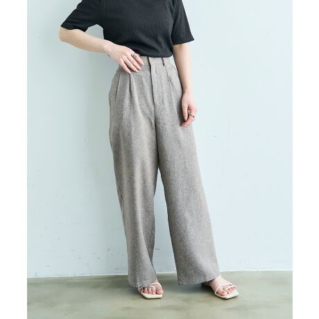 すっきりとした縦ラインが魅力の、リネンライクパンツ。