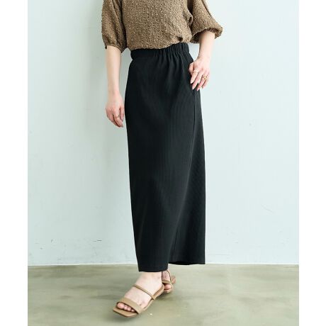 カジュアル素材を女性らしいシルエットに落とし込んだリブナロースカート。