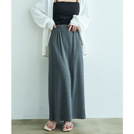 カジュアル素材を女性らしいシルエットに落とし込んだリブナロースカート。