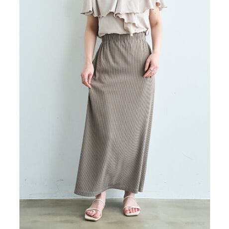 カジュアル素材を女性らしいシルエットに落とし込んだリブナロースカート。