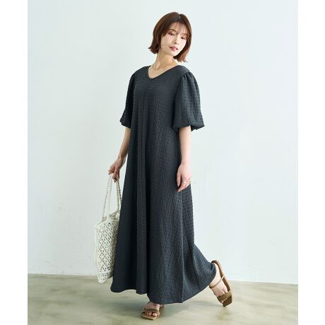 【イージーケア】 前後2way バルーンスリーブ ワンピース / カット楊柳【mil (ミル)】