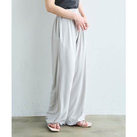 とろみのある薄手のリブ素材を使用したワイドパンツ。