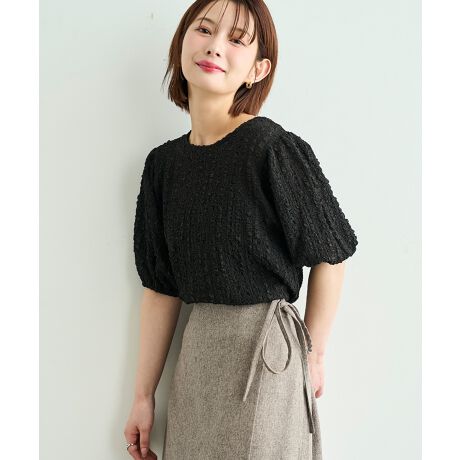 ぽこぽことした立体感のある素材が、シンプルなスタイリングに奥行きと華やかさをプラスし、一枚で着映えするデザインに仕上げました。