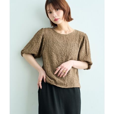 ぽこぽことした立体感のある素材が、シンプルなスタイリングに奥行きと華やかさをプラスし、一枚で着映えするデザインに仕上げました。