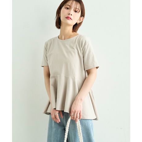 汗ばむ季節も心地よく着られる、汗ジミ防止加工を施したペプラムTシャツ。