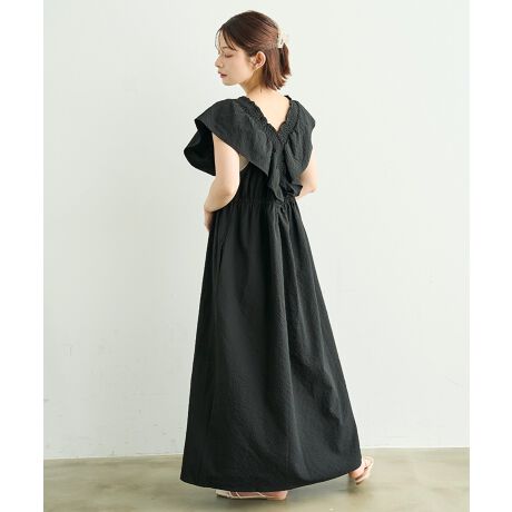 纏うだけでぱっと華やぐ、たおやかな表情と軽やかさが魅力の袖フリルワンピース。
