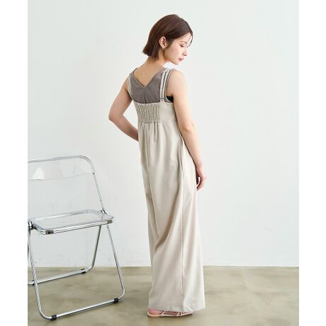 カジュアルに偏りがちなサロペットを、上品な素材感とディテールで、洗練された大人の表情にアップデート。