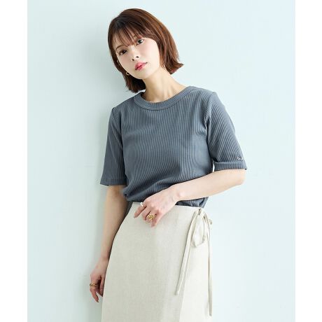 さらりとした肌ざわりと、透け感が気になりにくい程よい厚みのリブ素材で、1枚でも安心して着られるのが魅力。