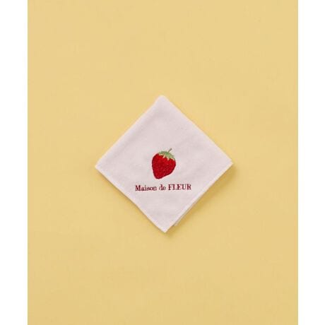 深みのある赤いいちごを繊細な刺繍で表現した、タオルハンカチ。