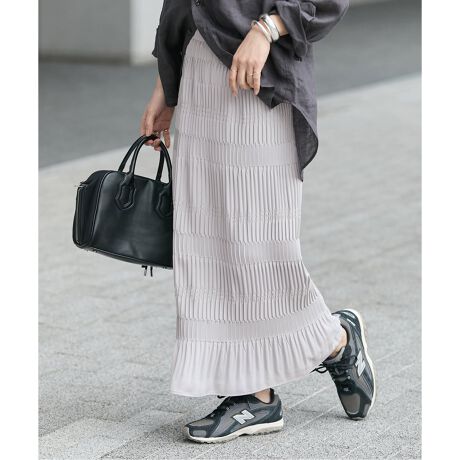 表情のある素材はシンプルなコーディネイトでも大人っぽく仕上がる着映えスカートです。