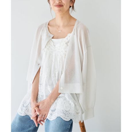 アンティークムード漂う、繊細なバテンレースとチュール刺繍が目を惹くキャミソール。