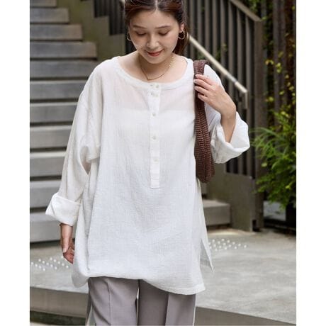 ソフトなコットンガーゼ素材を使ったリラックス感のあるトップス。
