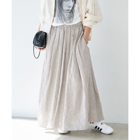 軽やかなチェック柄が印象的なフレンチリネンスカート。