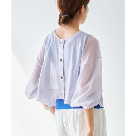 フィルムのような薄くて繊細な編地が女性らしい一枚。