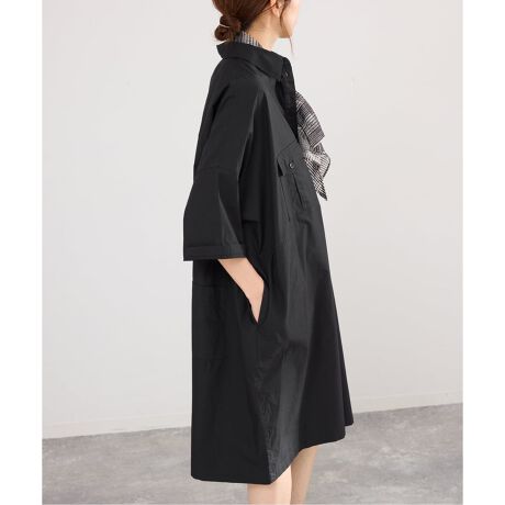 胸元のパッチポケットにはタックを入れ、さりげない立体感を演出。シンプルな中にも奥行きを持たせ、横から見るとワンピースのようにも見えるシルエットが魅力です。